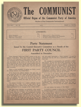 Official Organ The Official Organ of the United Communist Party was a newspaper called The Communist. There were a total of 16 editions produced of the English language edition, with various editions published in non-English languages. (Scholars interested in purchasing film of the publication should note that Harvard University Library holds the "master negative" and it is from them that copies may be purchased.) Each member of the party received one free copy of the publication as part of his membership dues and was encouraged to sell additional copies of the illegal publication to close associates.