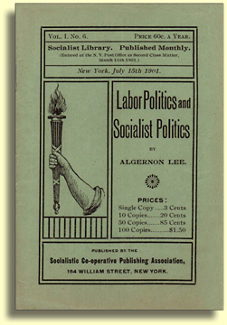 Lee, Algernon -- Labor Politics and Socialist Politics. (Socialist Library v. 1, no. 6) -- pamphlet (3 cents; 100 copies for $1.50)