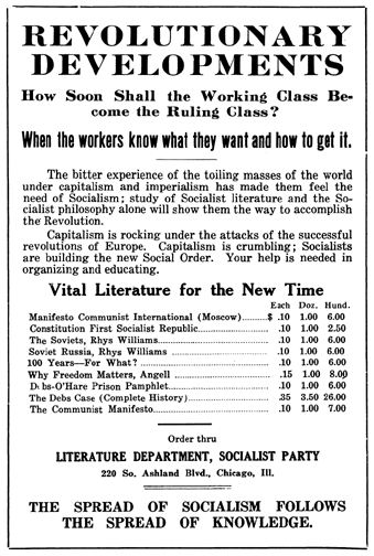 The Socialist Party did produce pamphlets and leaflets of its own as well. A partial list follows: